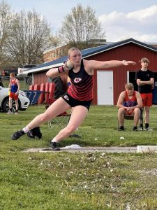 Gwyn Lori won both the shot and the discus for the Lady Redskins and set a new school record in the shot. She threw the discus 132-2 and the shot 46-3.